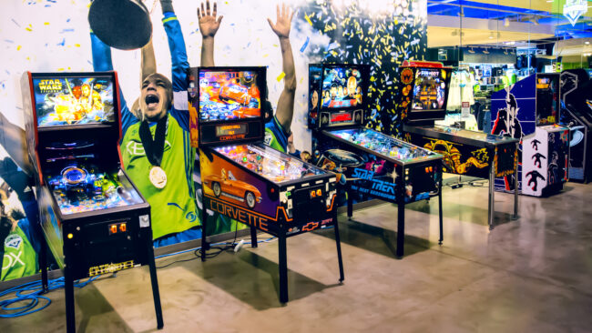 Pinball-ul este un echipament arcade în care jucătorii completează misiuni prin lansarea unei bile de metal pe un teren înclinat, lovind diverse ținte și acumulând puncte.