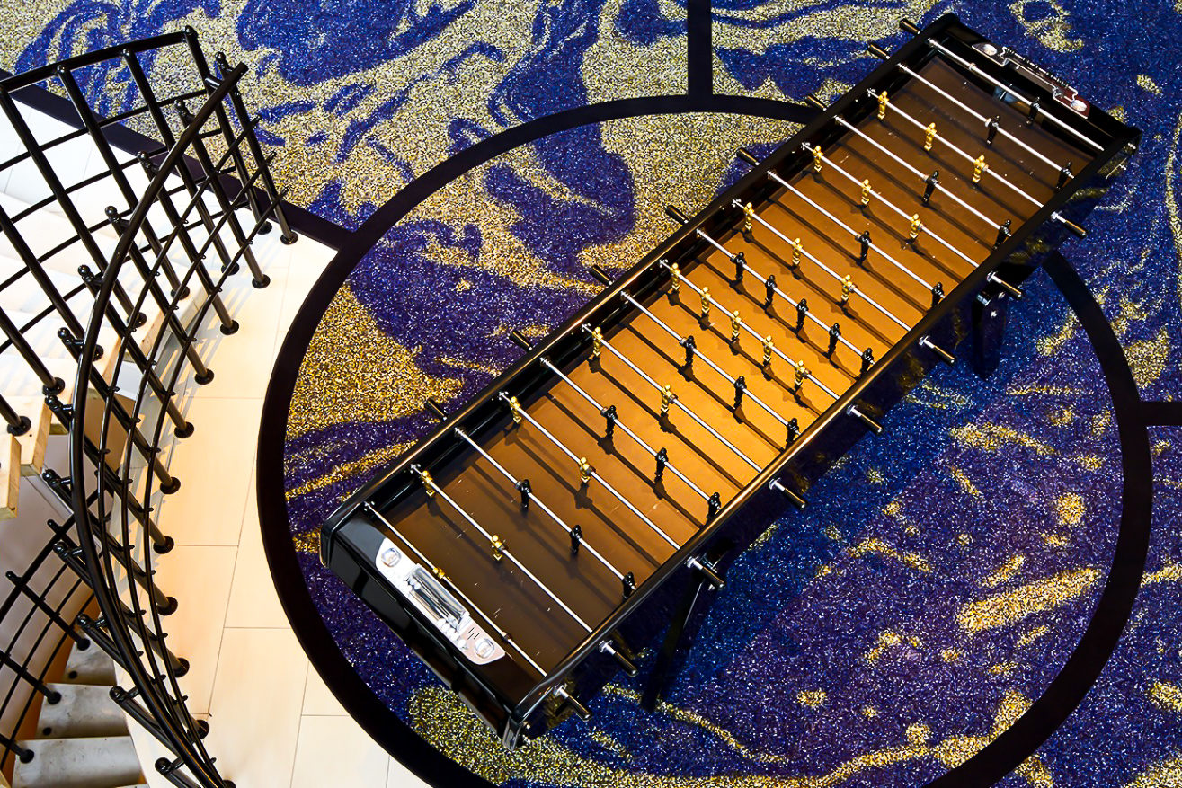 Gigantul nostru preferat este o variație a modelului Bonzini B90 (varianta recunoscută de Federația Internațională de Fotbal de Masă), având aceeași calitate impecabilă și aceleași detalii de finisaj, însă acesta poate găzdui un total de 8 jucători simultan (2 echipe de 4)!
